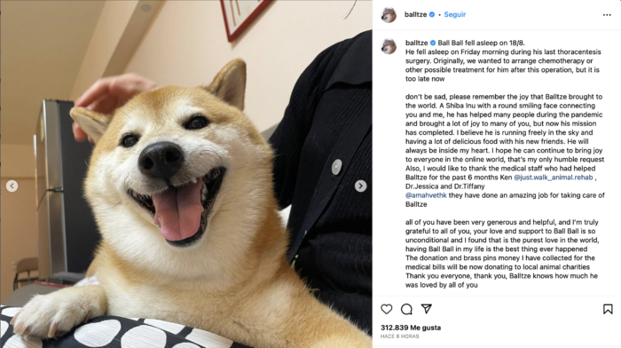 No estén tristes, por favor recuerden la alegría que Balltze trajo al mundo. Un Shiba Inu con una redonda sonrisa conectando contigo y conmigo, ayudando a muchas personas durante la pandemia y trayendo alegría a muchos de ustedes pero, ahora, su misión ha sido completada.