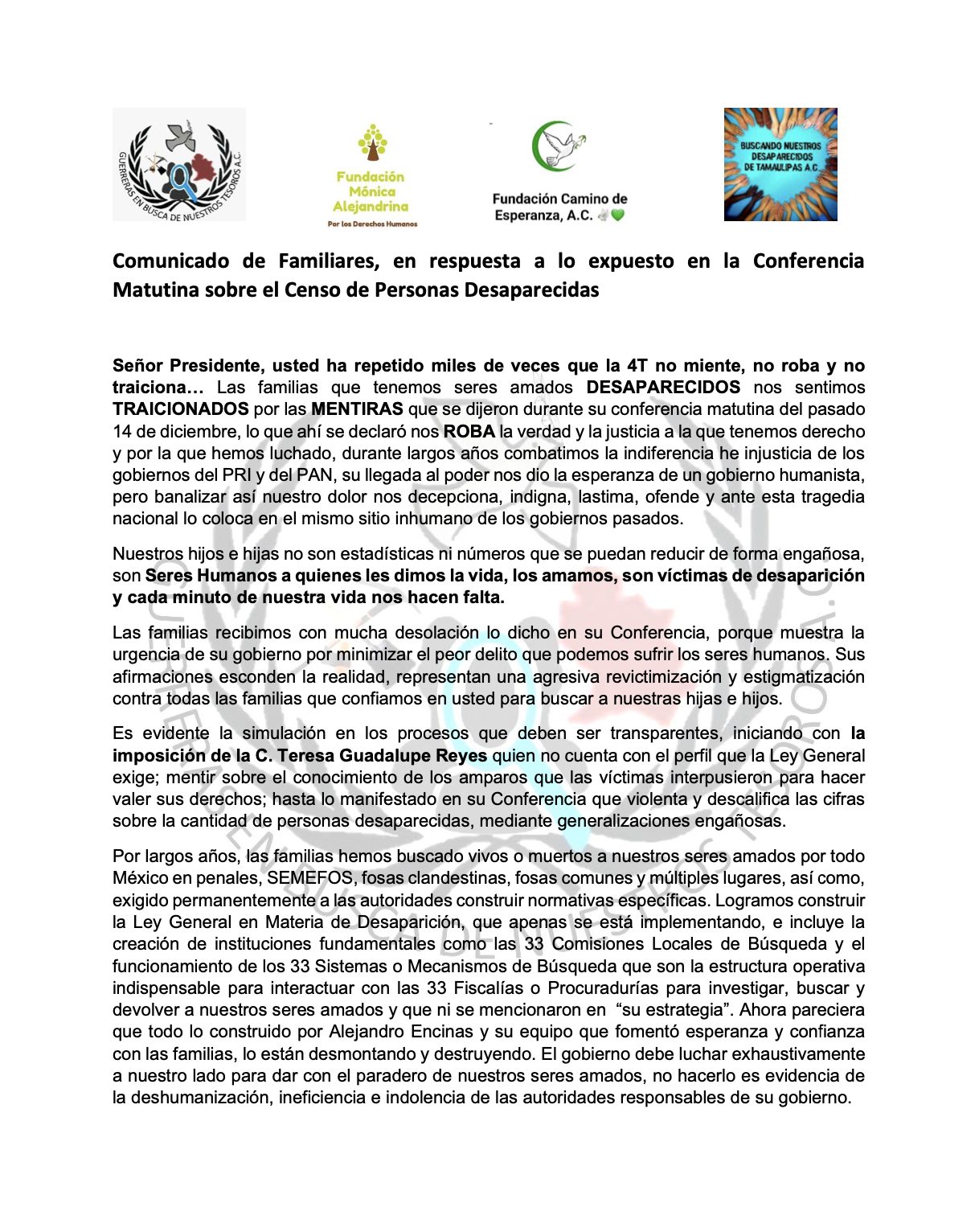 Te puede interesar > Familias de personas desaparecidas rechazan censo ordenado por AMLO