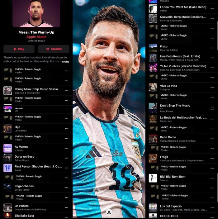 En total Messi tiene 60 canciones y dura 3 horas y 30 minutos en la plafatorma Apple Music, la cual hizo pública la playlist del astro argentino.