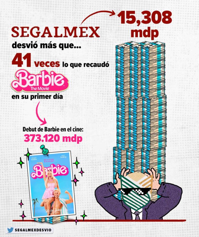 La Seguridad Alimentaria Mexicana (Segalmex) desvió recursos 41 veces la cifra recaudada en el estreno de la película Barbie, comparó la organización Mexicanos Contra la Corrupción y la Impunidad (MCCI).