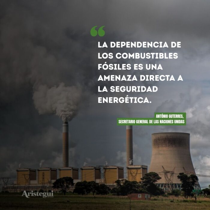 Para Guterres, el mayor riesgo actual a la seguridad energética son los propios combustibles fósiles. “Dejan a países y personas a merced de los precios, las interrupciones de suministro y la inestabilidad geopolítica”, dijo.