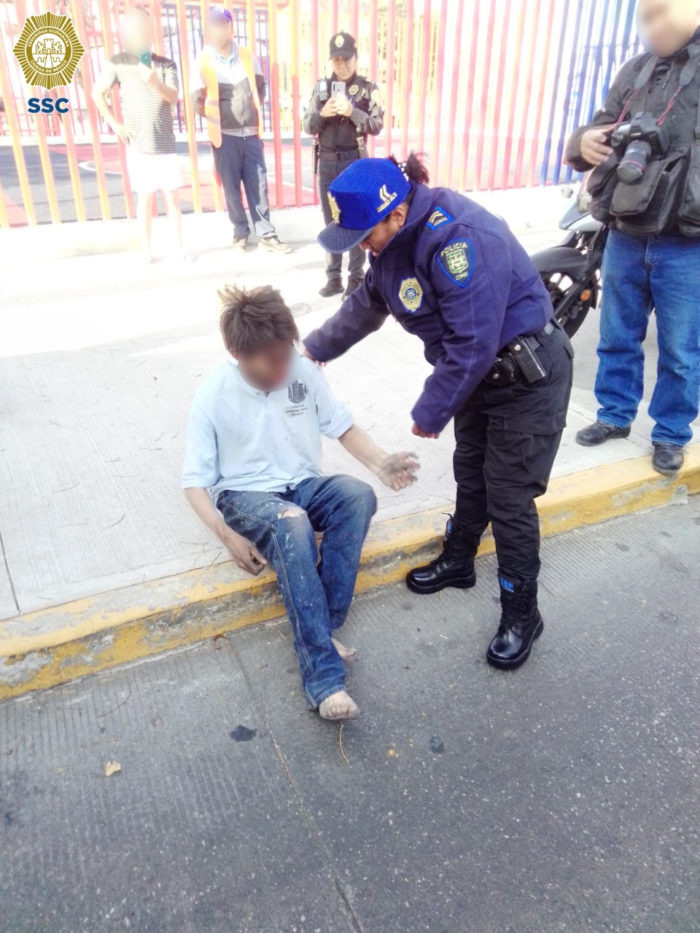 Por medio de una escalera, los uniformados auxiliaron al ciudadano a descender del camión. Asimismo, le entregaron prendas de ropa para que se vistieran. Además, le dieron alimento, por tratarse de una persona en situación de calle. También fue valorado clínicamente.