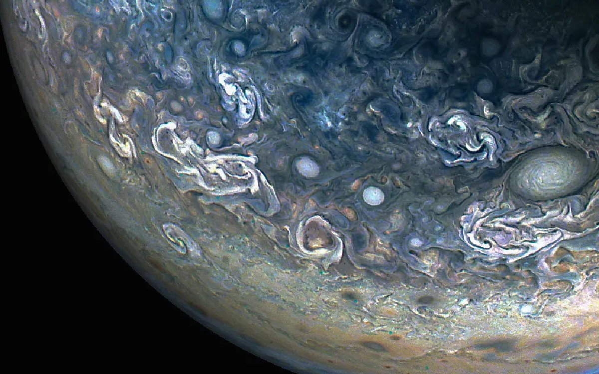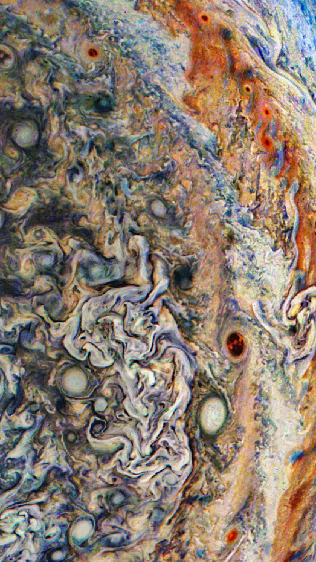 La nave Juno capta las coloridas y caóticas nubes de Júpiter