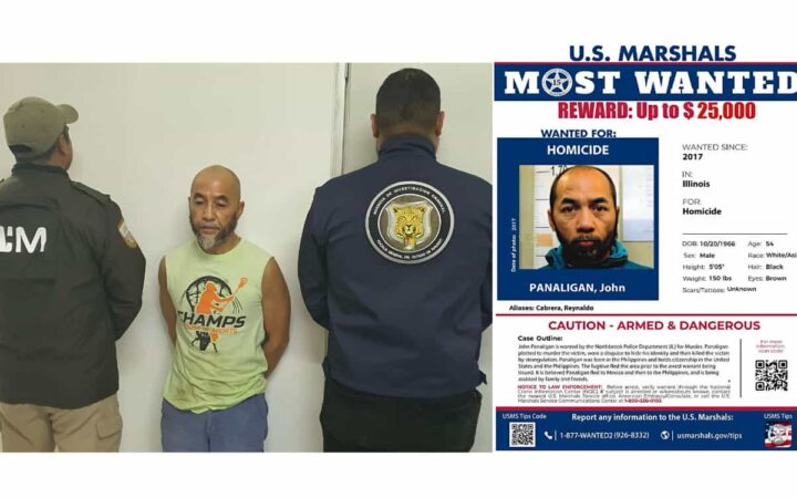 Panaligan, de 57 años, era buscado por presuntamente asesinar al abogado Victor Jigar Patel, quien fue encontrado estrangulado en su oficina de Northbrook, Illinois, el 7 de diciembre de 2016.