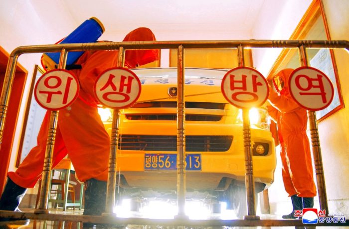 Covid-19 sí alcanzó a Corea del Norte; al menos eso vemos en esta imagen publicada el día de ayer por la Agencia Central de Noticias del país asiático. Dos personas enfundadas de rojo desinfectan un vehículo como estrategia de prevención contra el esparcimiento del virus. De acuerdo con la BBC, se han reportado alrededor de 2.5 millones de casos de “fiebre” en Corea del Norte, además, la nación se encuentra en confinamiento estricto. Sin embargo, las autoridades han dicho que su política de fronteras cerradas ha mantenido al virus de Covid-19 fuera del país.