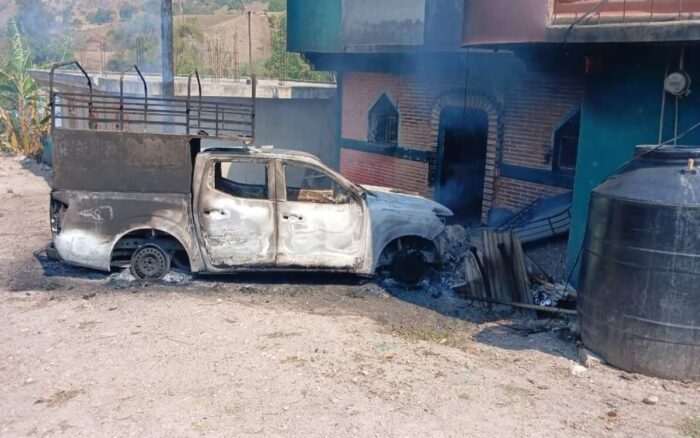 “Los elementos de seguridad localizaron en el lugar tres vehículos, tres viviendas y la Comisaría incendiada. En estos hechos no hay personas lesionadas ni fallecidas“, afirmó la dependencia estatal.