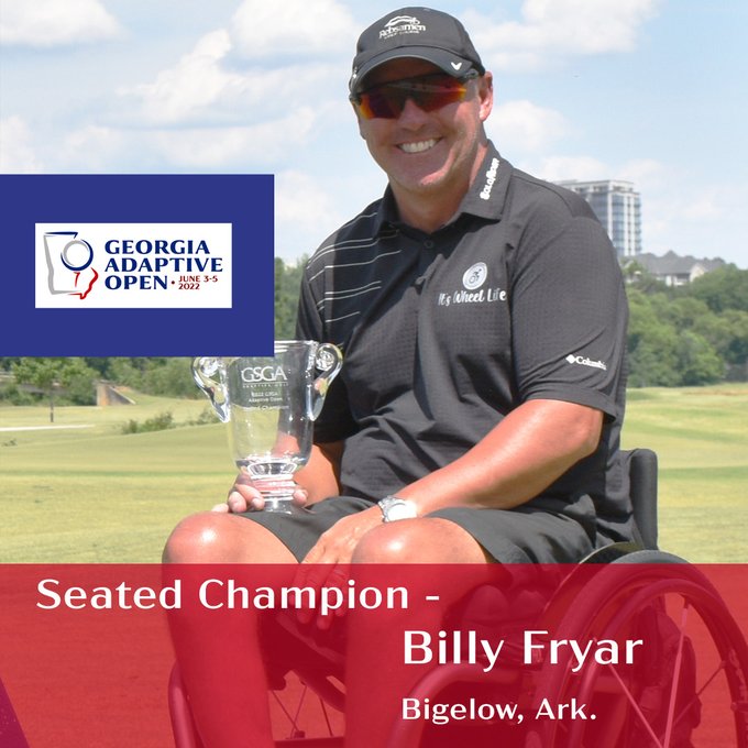 Billy Fryar, de 50 años, originario de Bigelow, Arkansas, sufrió un grave accidente automovilístico hace 22 años, pero se empeñó en seguir con una de sus pasiones deportivas, hasta convertirse en el golfista adaptado mejor clasificado de su país, tras padecer una lesión medular completa.
