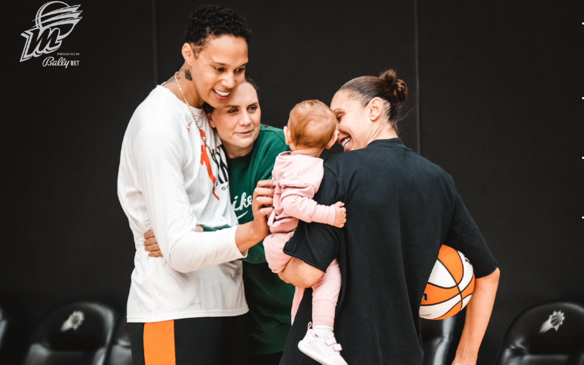 A Griner, de 32 años, se le vio sonriente y el equipo compartió una foto junto a la familia de su compañera de equipo Diana Taurasi.