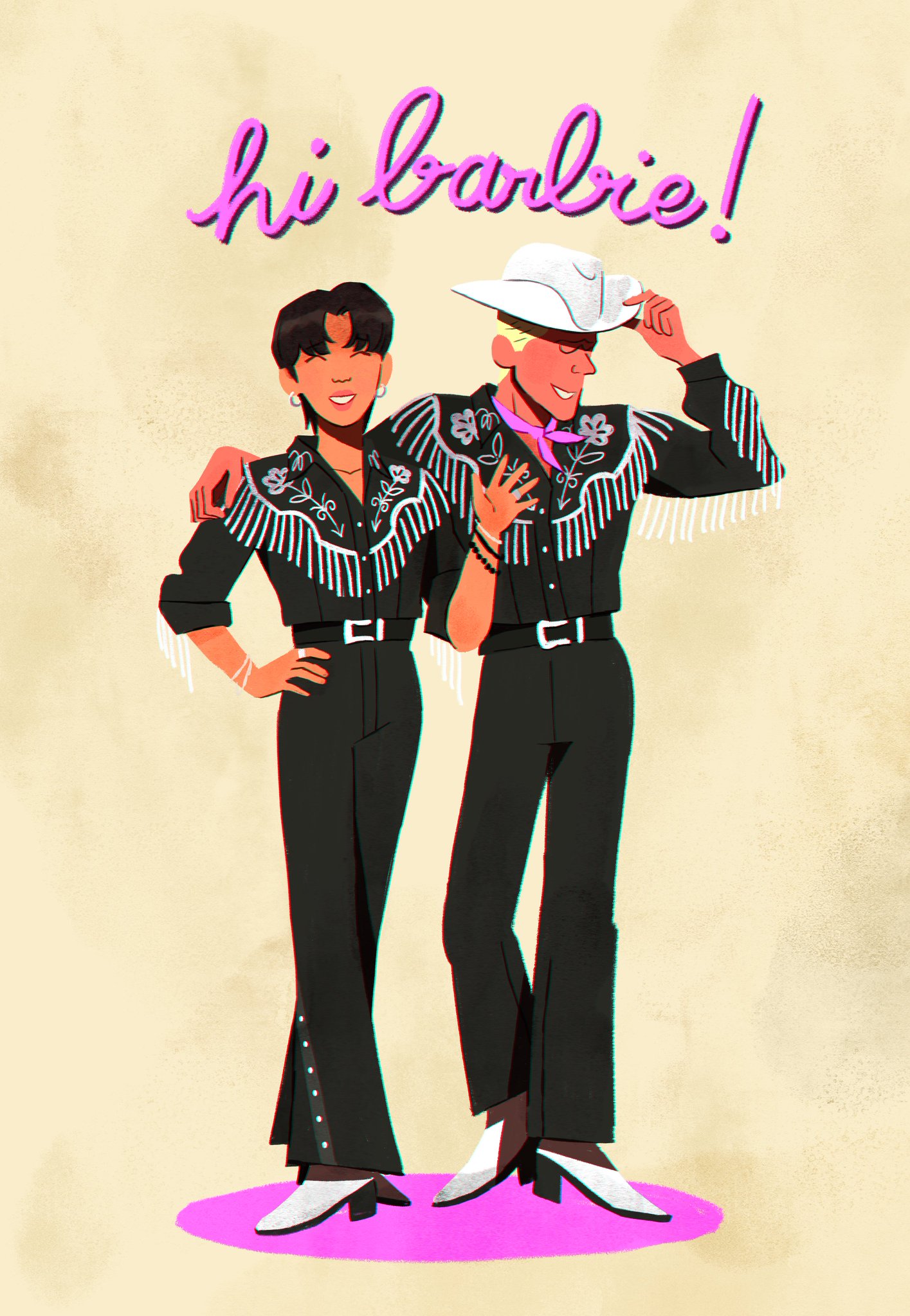 Warner Bros. publicó un video en el que muestra una imagen de Ken y otra de Jimin luciendo un atuendo de cowboy muy parecido.