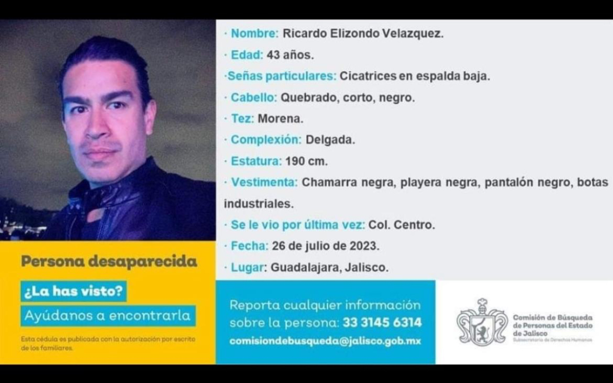 Rodrigo Elizondo, hermano de Ricardo, desaparecido el 26 de julio en Guadalajara, denunció en 'Aristegui en Vivo' que su familia no ha sido atendida por el gobierno local para encontrar a Ricardo, además de señalar que 'la estructura de la Fiscalía de Jalisco no esta al nivel' de las necesidades en materia de desaparición, ya que un funcionario les dijo que su caso es 'uno de 300'.