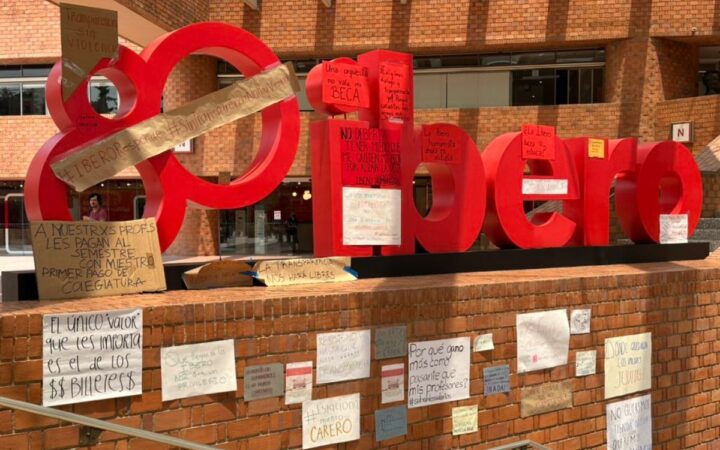 Con el grito de “la Ibero humanista es cada vez más elitista” un grupo de estudiantes pronunció frente al rector Luis Arriaga una serie de medidas que ha tomado la universidad. El día de hoy, hubo un “cartelazo” en la explanada de la universidad en la que estudiantes escribieron sus principales exigencias.