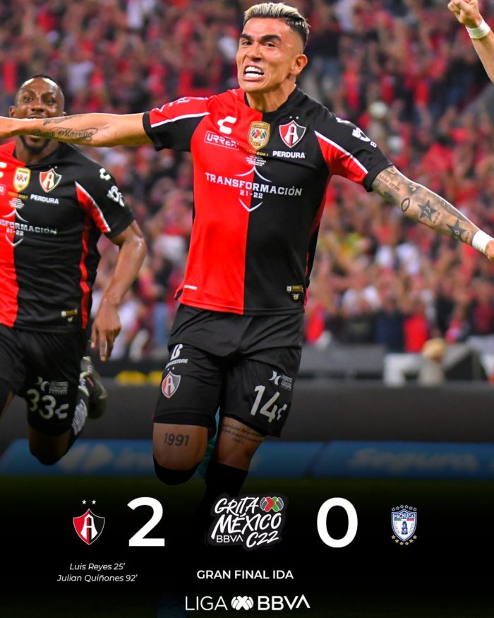 Atlas se acercó el jueves a la obtención del bicampeonato en el fútbol mexicano tras ganar 2-0 como local a Pachuca en el partido de ida por la final del torneo Grita México C22.