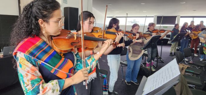 Ella es una de las 43 jóvenes que viajaron la semana pasada desde México hasta Bogotá para dar un concierto conjunto con mujeres de la Orquesta Batuta Laboratorio y la Orquesta Filarmónica de Mujeres de la capital colombiana.