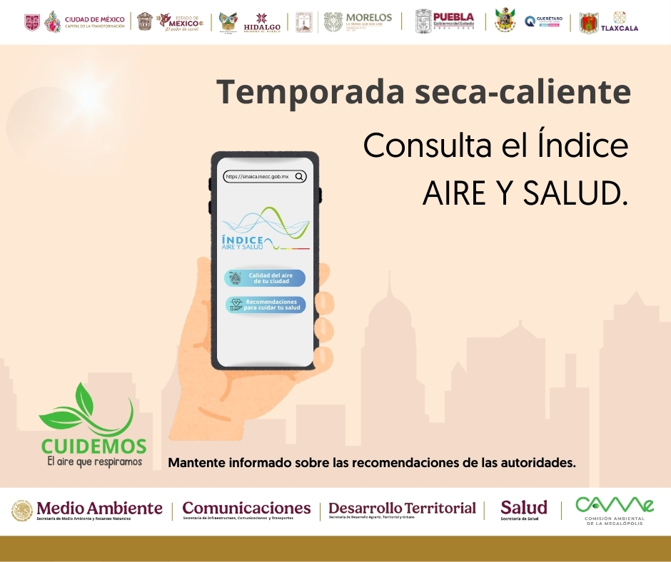 - Mantenerse informados sobre la calidad del aire a través de la App “Aire”, el sitio web www.aire.cdmx.gob.mx o la cuenta de X (Twitter) @Aire_CDMX.