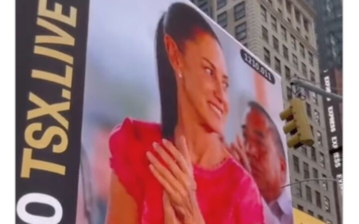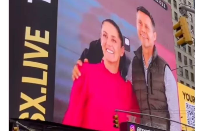 Imágenes de Sheinbaum aparecen en Times Square; PAN denuncia ante INE