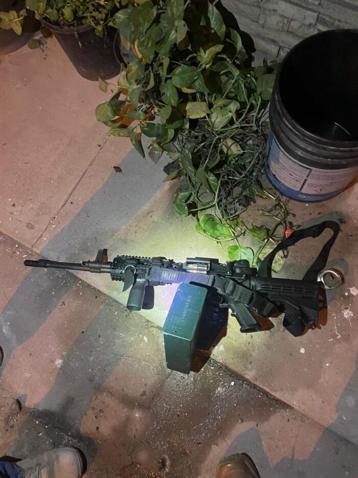 Asimismo, se aseguraron cinco armas largas, un arma corta, un vehículo, narcótico y el inmueble quedó sellado bajo resguardo policial.