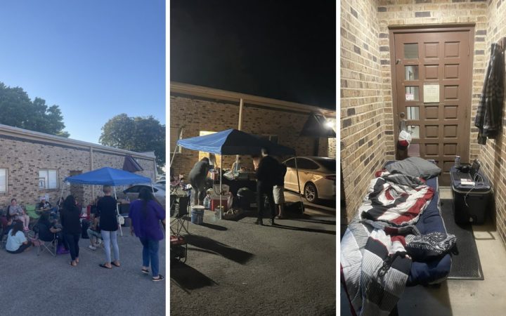 Durante la madrugada de este miércoles, la policía de Texas se hizo presente a la manifestación, donde amenazó a uno de los padres para que retirara la cama en la cual acampó.