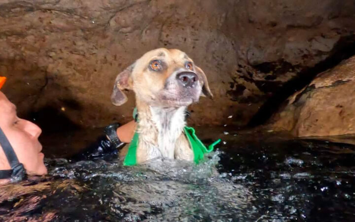 La perrita, que solía acompañar a los turistas a la gruta cuando realizan sus recorridos, permaneció durante estos días sobre una pequeña cueva dentro del cenote, rodeada de agua y oscuridad.