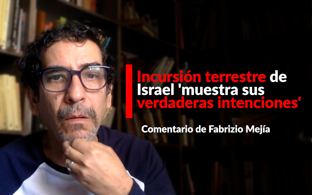 El escritor Fabrizio Mejía consideró que la incursión terrestre de Israel a Gaza 'muestra sus verdaderas intenciones de sacar por la fuerza a dos millones de personas del territorio'. Lamentó que la comunidad internacional sea 'débil' para evitar que 'Israel cometa el genocidio que está cometiendo'.