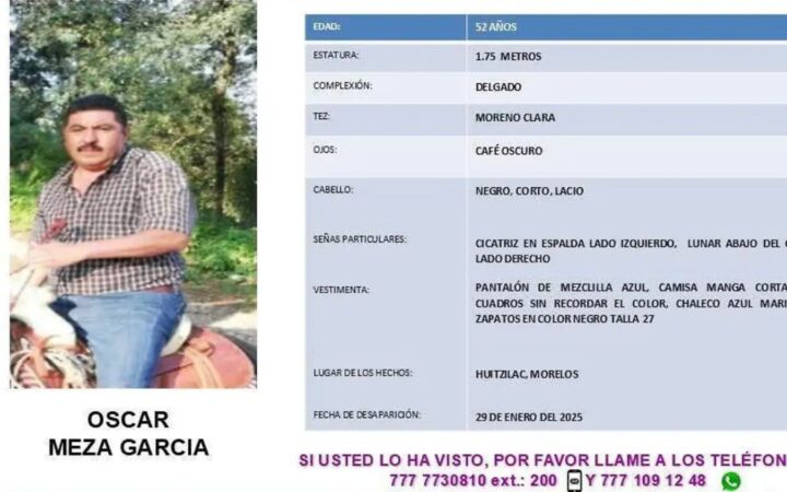 Meza García, de 52 años, había sido reportado como desaparecido el 29 de enero ante la Fiscalía General del Estado de Morelos (FGE), luego de que sus familiares perdieran contacto con él en Huitzilac.