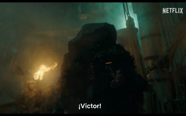 El tráiler también mostró una escena en la que apenas se distingue la figura del monstruo mientras está acostado y sujetado en una posición muy similar a la de Jesús en la cruz.