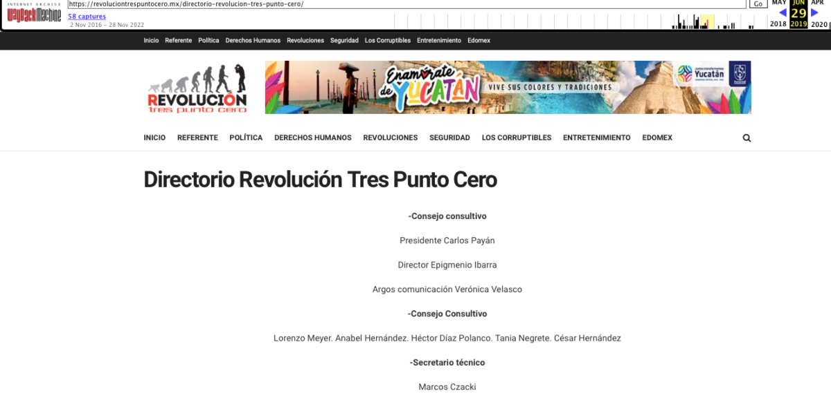 Con el portal Wayback Machine, que recopila versiones históricas de sitios web, se ha verificado que al menos desde noviembre de 2016 hasta junio de 2019, tanto Ibarra como Payán figuraban en el consejo consultivo de Revolución 3.0 como director y presidente, respectivamente. Sin embargo, los archivos permiten ver que para mediados de 2020, cuando Neurona ya estaba envuelta en investigaciones judiciales, el directorio de Revolución 3.0 cambió y ambos fueron reemplazados.