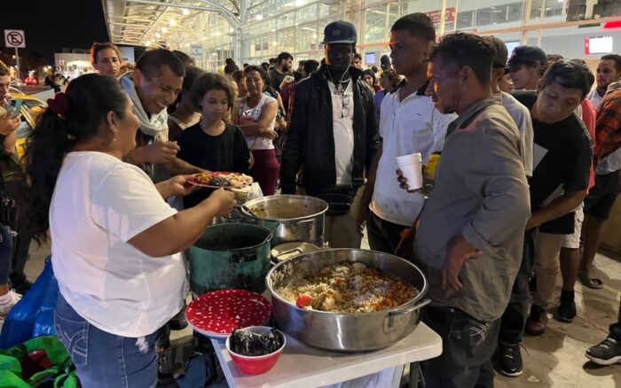 “Gracias por la comida, está muy rica, y es que la gente difícilmente nos ayuda”, dijo Laura, migrante venezolana que viaja con 4 hijos de 17, 14, 9 y 6 años de edad.