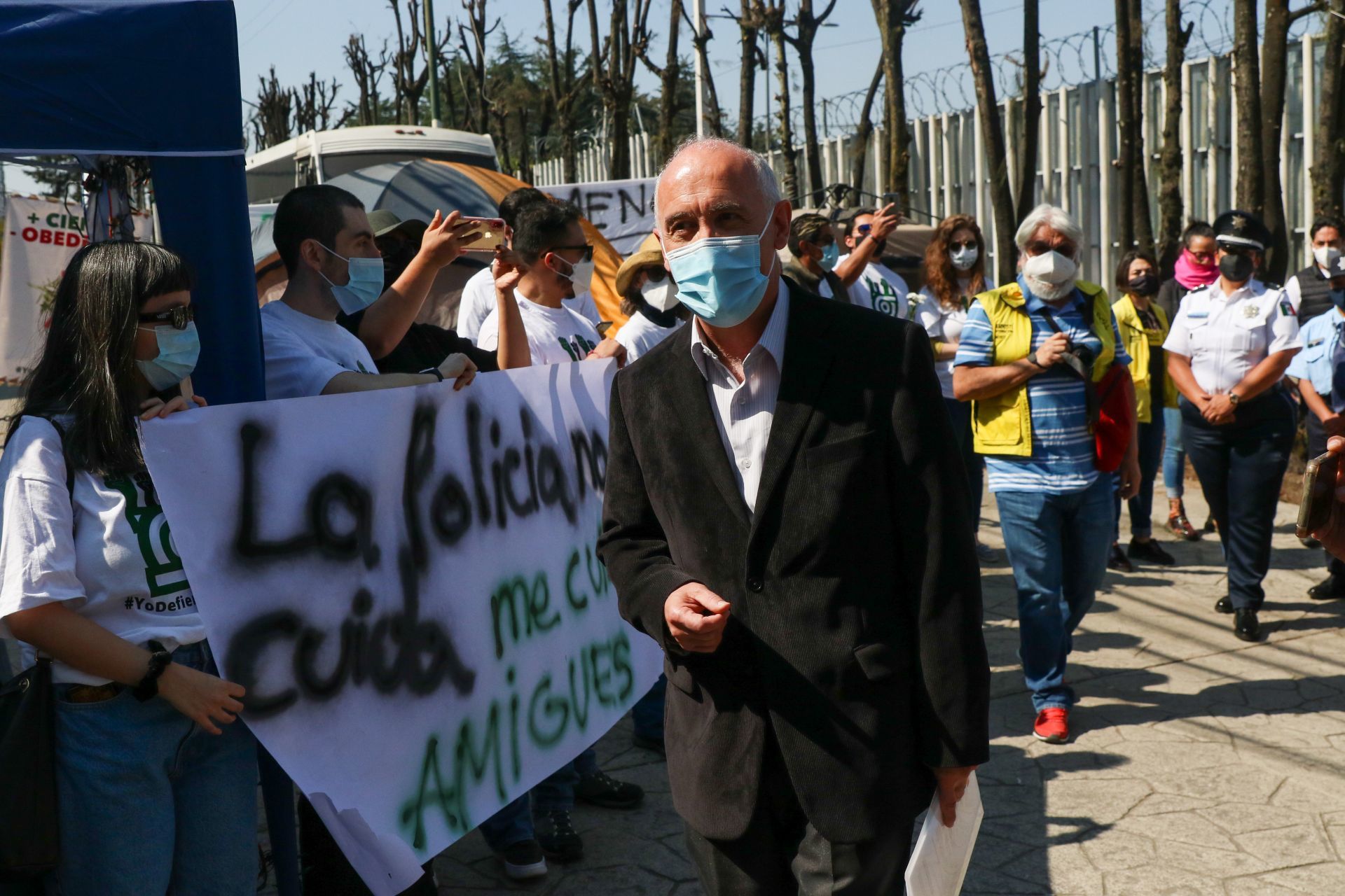 Las y los alumnos que tienen tomadas las instalaciones del CIDE solo permitieron la entrada de las siete elementos del SPF, sin embargo, no dejaron ingresar al director de Administración y Finanzas del CIDE, Adolfo Fernández Ruiz.