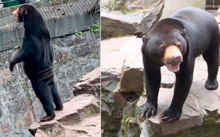 El zoológico de Hangzhou en el este de China negó las sugerencias de que algunos de sus osos eran personas disfrazadas, después de que en rede sociales se viralizaron videos en donde uno de sus ejemplares de oso malayo sostenido sobre sus patas traseras, y con un aspecto asombrosamente humano.