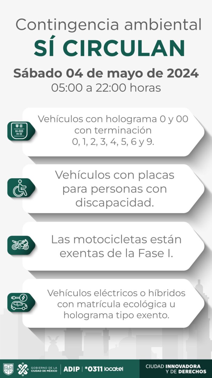 La contingencia ambiental continúa en el Valle de México y por ello hoy, sábado 4 de mayo, se aplica el Hoy No Circula.