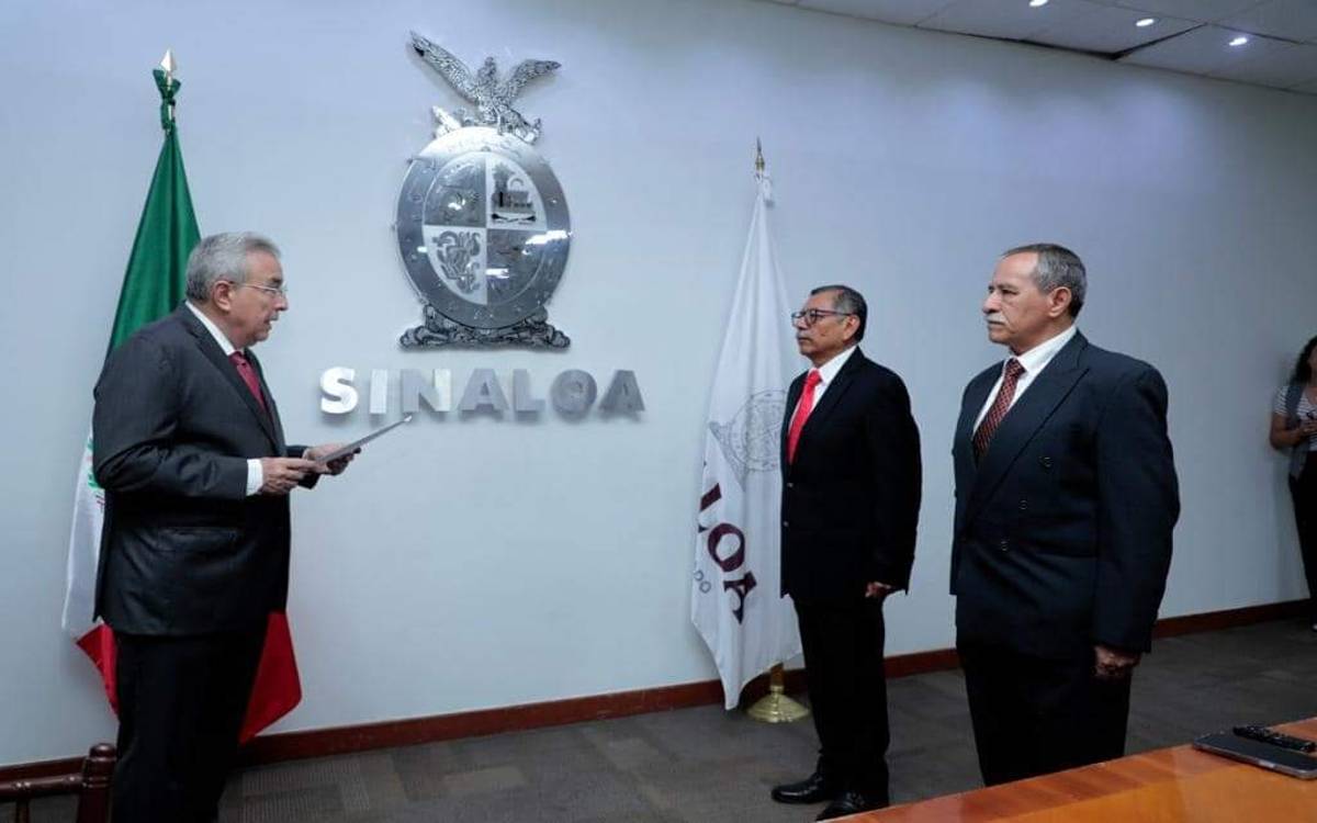 El gobernador de Sinaloa, Rubén Rocha Moya, tomó protesta para encabezar la Secretaría de Seguridad Pública Estatal y la subsecretaría de esta misma, a los generales en retiro, Gerardo Mérida Sánchez y Leoncio García Alatorre, respectivamente.