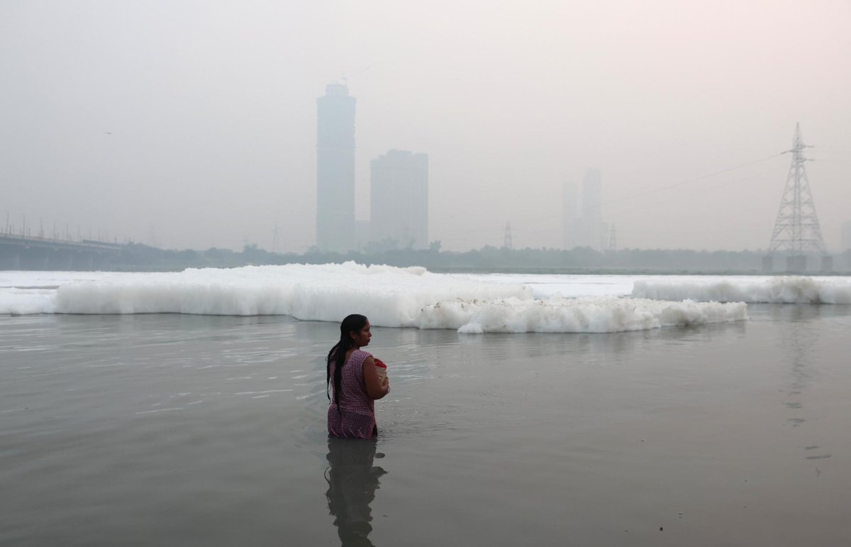 En el barrio de Kalindi Kunj, situado en los bancos del Yamuna, una espesa capa blanca de espuma tóxica recuerda a los residentes la pésima calidad del agua del río, que rebasa más de 3,000 veces los niveles máximos de unidades bacterianas coliformes recomendados por las autoridades sanitarias.
