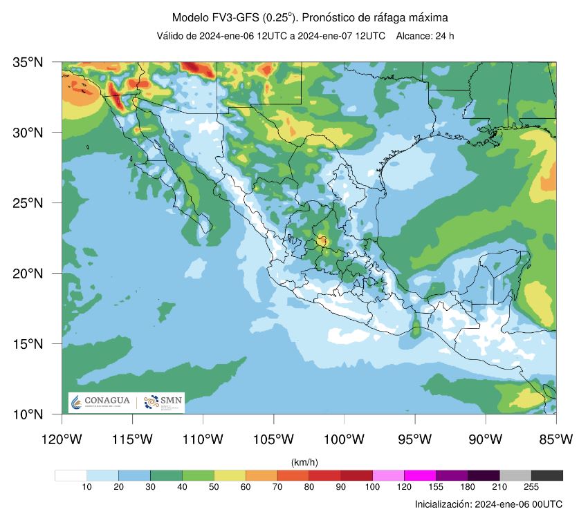 Este domingo un nuevo Frente Frío llegará al país por la Península de Baja California y el noroeste del territorio nacional; ocasionará vientos muy fuertes a intensos con rachas de 100 a 120 km/h y lluvias fuertes.