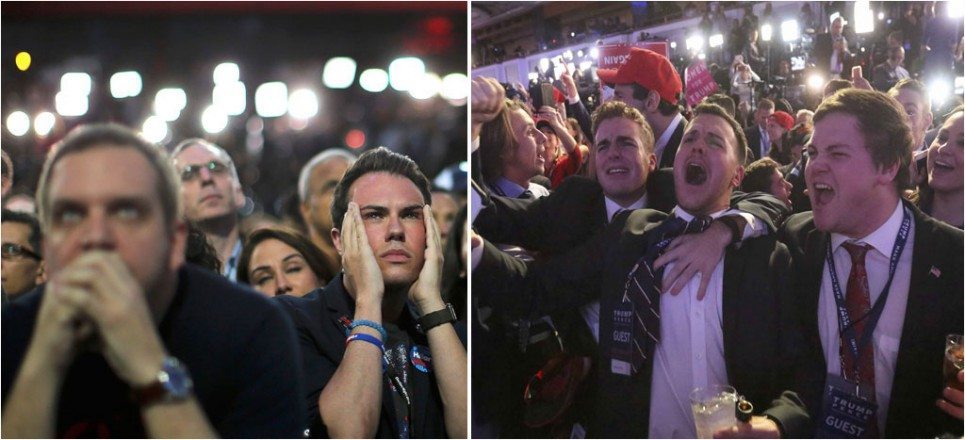 Caras largas entre simpatizantes de Clinton y festejos para Trump en las #EleccionesEU (Fotos)