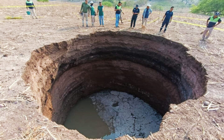 El hundimiento, que apareció en un terreno de cultivo de maíz, tiene una profundidad de 10 metros y un diámetro de 7.5 metros.