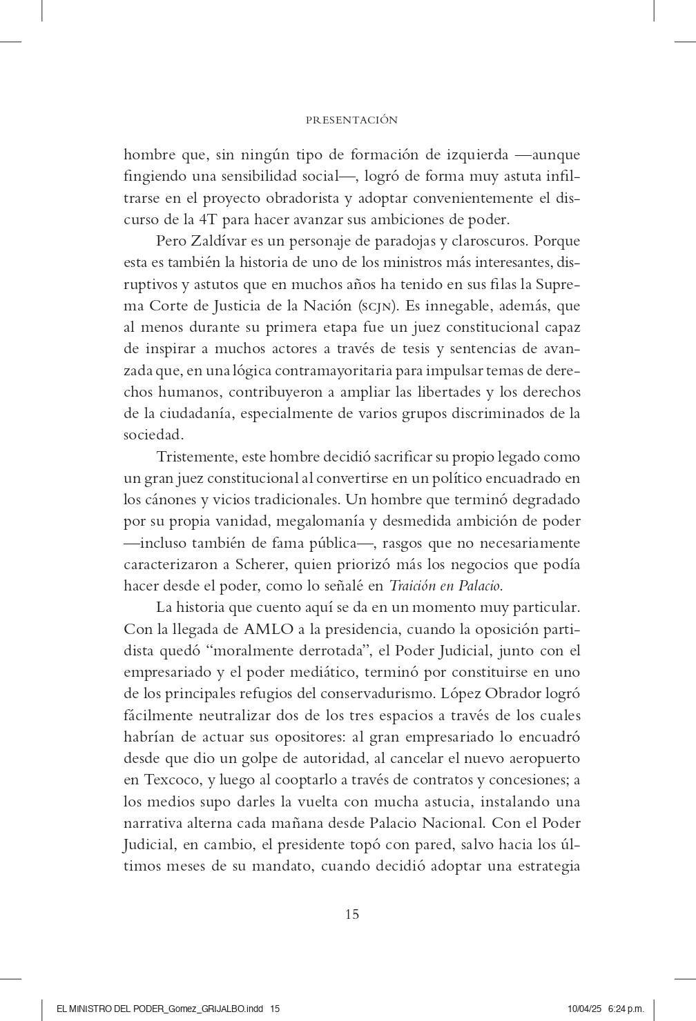 En esta obra, que sigue a la publicación de Traición en Palacio, el libro que intentaron censurar, el periodista Hernán Gómez Bruera investiga de forma rigurosa, a partir de testimonios, documentos e información inédita, el papel que durante los últimos años jugó Zaldívar como uno de los operadores del negocio de la justicia en México.