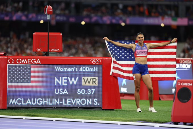 La estadounidense, que cumplió 25 años durante los Juegos, mejoró la marca de 50.65 que ella misma había establecido el pasado 30 de junio en Eugene (Oregón).