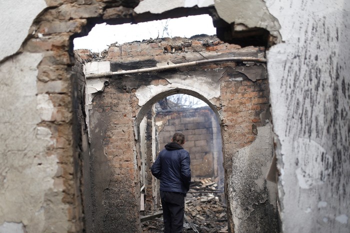 Entre escombros, un hombre se asoma entre lo que era una vivienda en la ciudad Derhachi, cerca de Járkov en Ucrania. Entre muchas otras propiedades, la casa de Vera Kosolopenko fue destruída tras bombardeos rusos. El conflicto armado entre Rusia y Ucrania continúa desde el pasado 24 de febrero y, hasta ahora, la Agencia de la ONU para los Refugiados (ACNUR) ya ha declarado que la emergencia en Ucrania corresponde a un nivel 3, el nivel más alto en la métrica de la institución. Esto a raíz de que, de acuerdo a su estadística actualizada el 12 de mayo, más de 6 millones de personas han huido de territorio ucraniano y 7 millones han sido desplazadas dentro del país.