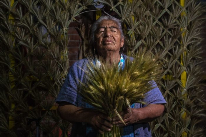 Esta segunda toma sucede en el mismo contexto: la preparación para la pasada “Fiesta de Espigas” en el estado de Hidalgo. La celebración es un sincretismo cultural, tiene base en la antigua ceremonia llamada “Huey Tozoz tli” (la Gran Vigilia o la Gan Punzada) que se entrelazó con la práctica retomada por la parroquia de San Pedro durante una sequía en 1943. La fiesta que fue cancelada durante los últimos dos años a causa de la pandemia, se realiza de forma comunitaria y las labores se dividen de la misma manera; algunos cosechan el trigo que se usará mientras que otros preparan los pigmentos que lo adornan y también construyen los tapetes.