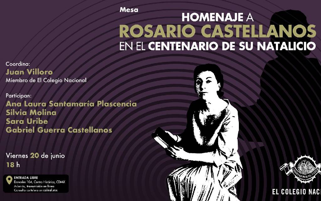 Con motivo del centenario del nacimiento de Rosario Castellanos (1925–1974), El Colegio Nacional ha preparado una jornada de actividades para rendir homenaje a una de las figuras más relevantes de las letras mexicanas del siglo XX.