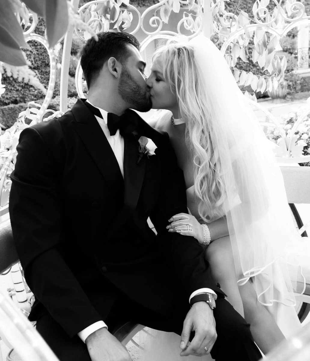 Sam y Britney se conocieron en el rodaje del video "Slumber Party" en 2016; cinco años después anunciaron su compromiso y para 2022 se casaron.