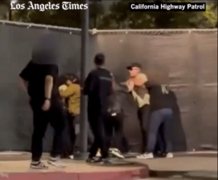 El video fue grabado por un testigo a las afueras del BMO Stadium, casa del LAFC, y fue proporcionado por la Patrulla de Carreteras de California, la agencia que investigó el incidente.