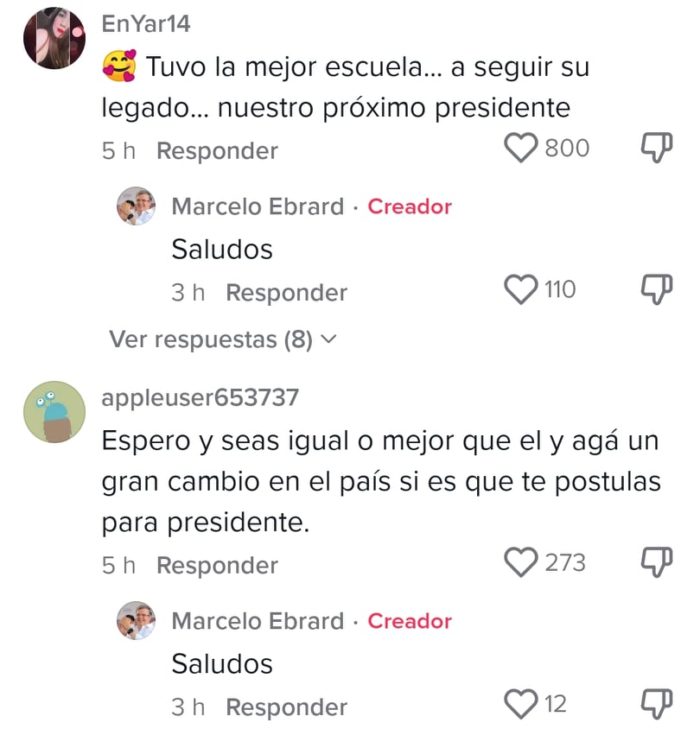Los usuarios de TikTok reaccionaron al clip y expresaron su apoyo en el camino que Ebrard realiza para ser el próximo candidato presidencial de Morena.