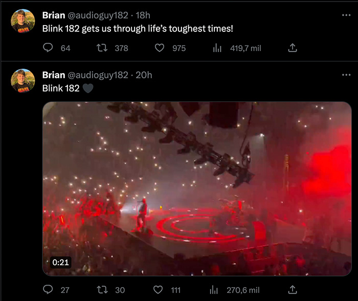 “¡Blink 182 nos ayuda a superar los momentos más difíciles de la vida!”, tuiteó Szasz.