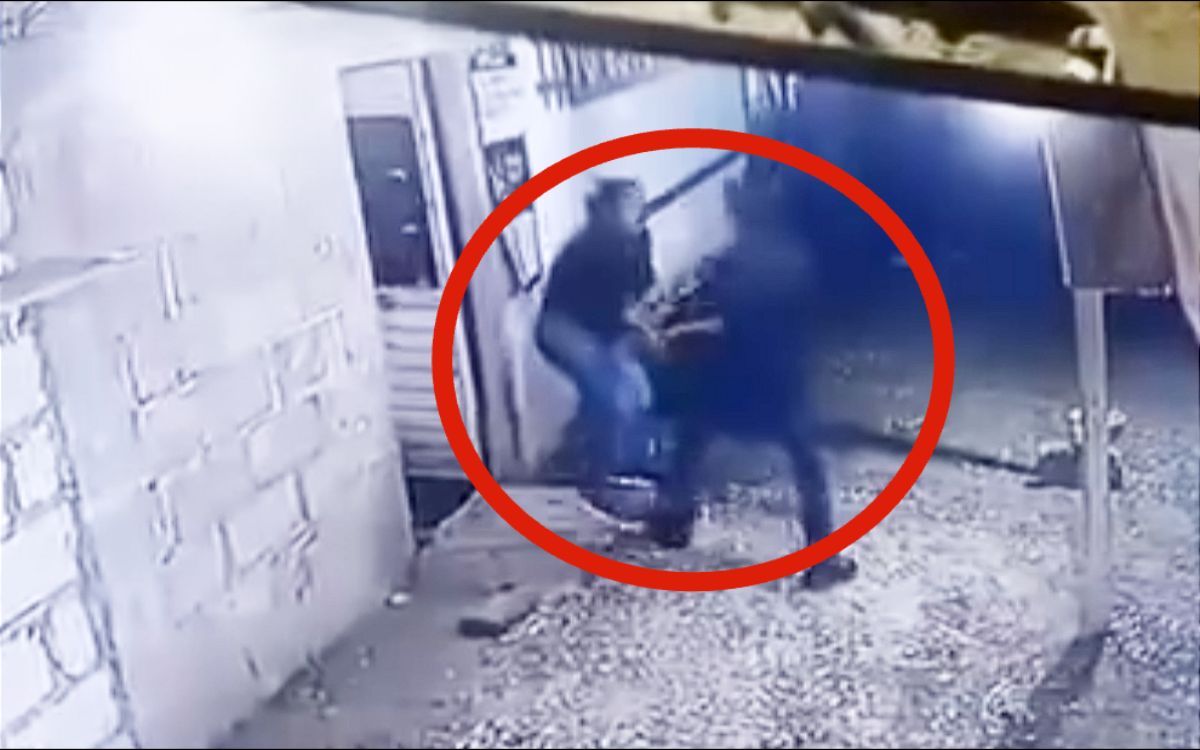 En las imágenes se observa la llegada de tres hombres armados, uno de ellos con un arma larga, quienes amenazan a un hombre en la puerta de su domicilio y lo obligan a ingresar.
