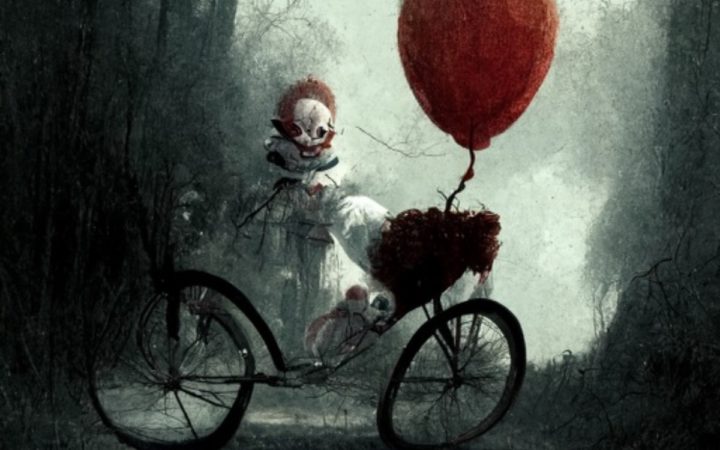 This was done by an AI bot. I asked my tech friend, Jake, to put Pennywise on a bike and this came out. pic.twitter.com/J5oAI3Tozq