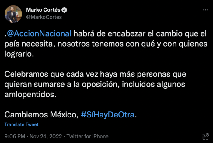 También en Twitter, Cortés afirmó que el PAN tiene con qué para un cambio en el país.