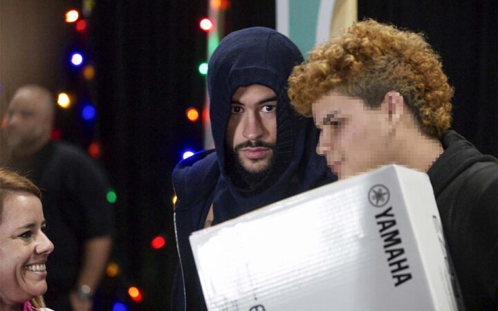 Bad Bunny entrega regalos navideños a niños y jóvenes