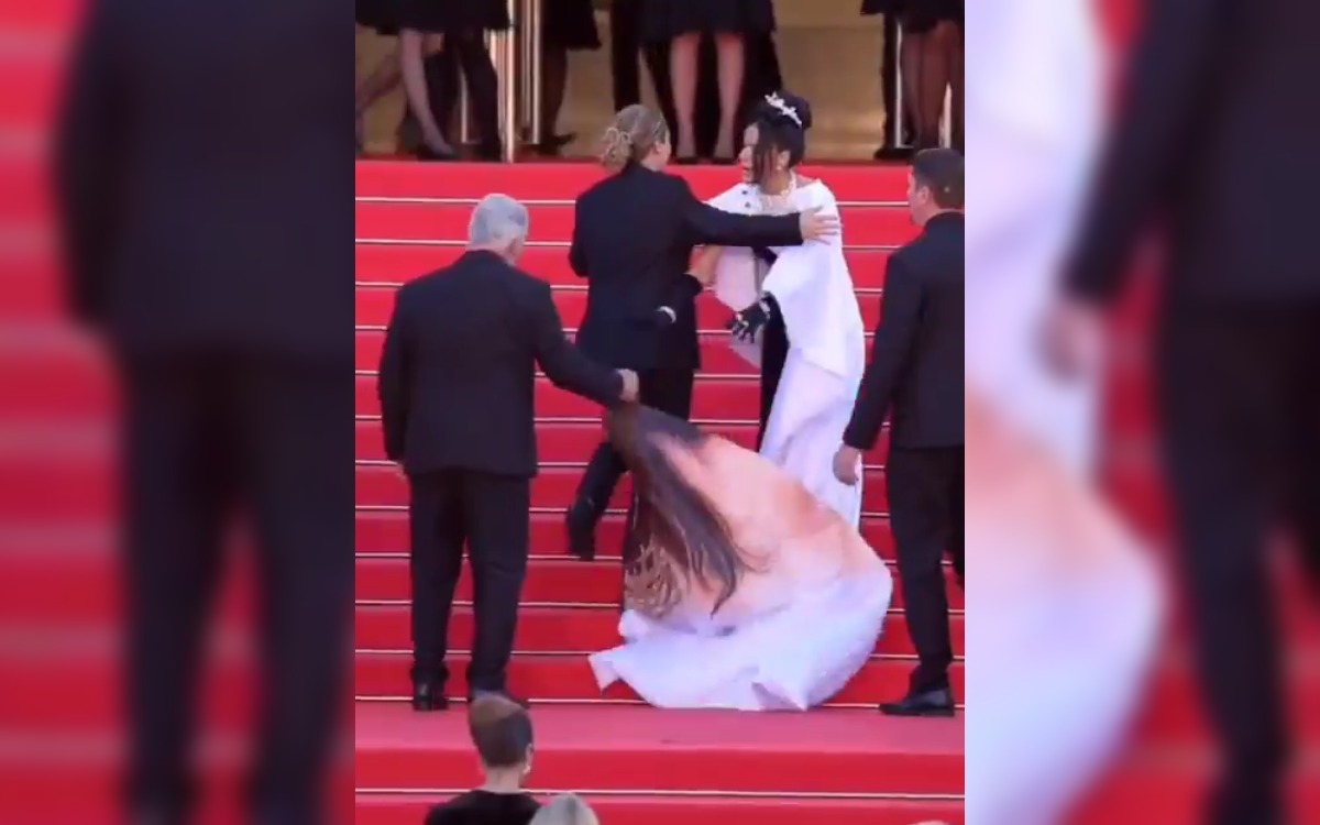 Video | Intentan impedir mostrar vestido con el rostro de Jesucristo a actriz en Cannes