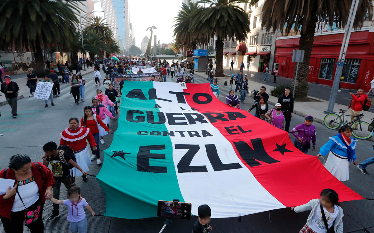 Los manifestantes denunciaron el saqueo de las tierras indígenas en el estado de Chiapas por parte del crimen organizado bajo la omisión de las autoridades, lo que, según dicen, ha generado una guerra civil de facto en la zona.